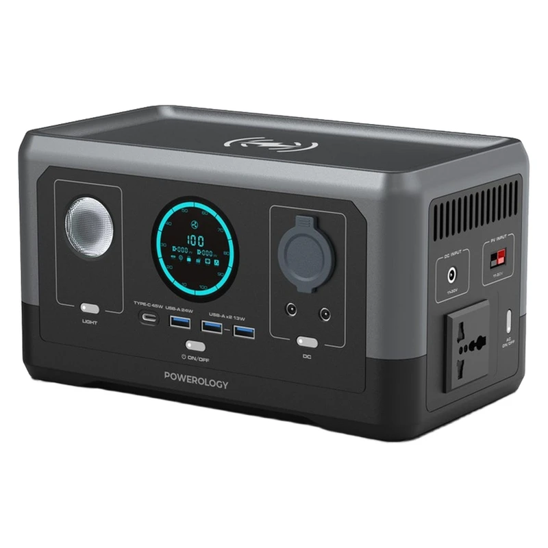 پاوربانک پاورولوجی مدل PPBCHA40، ظرفیت 76800 میلی‌آمپر ساعت، شارژ کردن سریع، امکان شارژ بی‌سیم، قابلیت شارژ از طریق پنل خورشیدی، سازگار با گوشی‌های موبایل، تبلیت و سایر وسایل برقی، جنس بدنه پلاستیک، دارای 6 درگاه خروجی